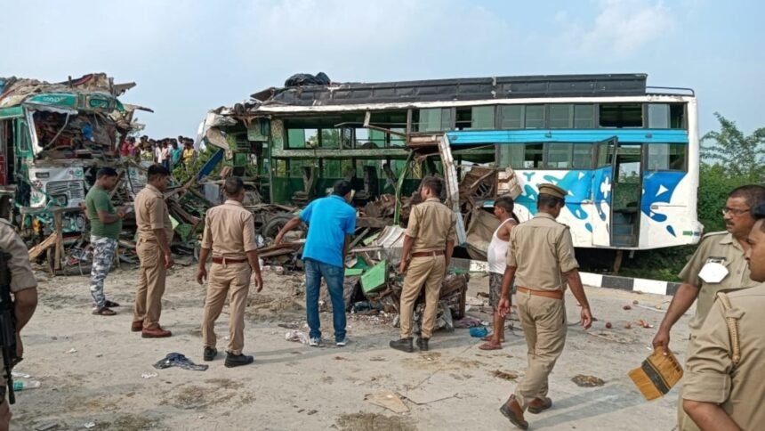 बाराबंकी। बाराबंकी जिले में शनिवार की सुबह एक दिल दहला देने वाला हादसा हुआ, जब हैदरगढ़ की ओर जा रही एक यात्री बस पर बरगद का विशाल पेड़ गिर पड़ा। हादसा इतना भयावह था कि बस के अगले हिस्से के परखच्चे उड़ गए और उसमें बैठे यात्री दब गए। घटना में पांच शिक्षकों समेत कुल छह लोगों की मौके पर ही मौत हो गई, जबकि 17 यात्री गंभीर रूप से घायल हो गए। हादसे के बाद मौके पर चीख-पुकार मच गई और स्थानीय लोग व पुलिस बचाव कार्य में जुट गए।