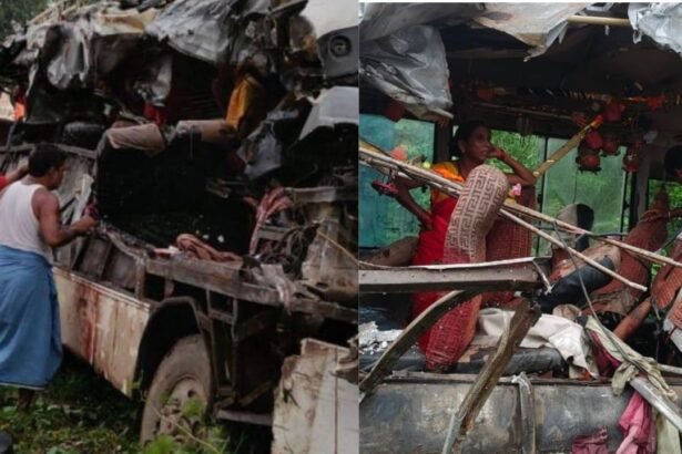 देवघर में सुबह-सुबह मची चीख-पुकार, कांवड़ियों की बस और गैस सिलेंडर वाहन की भीषण टक्कर