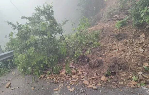 मसूरी में भारी बारिश के कारण धनोल्टी मोटर मार्ग पर भूस्खलन की घटना।